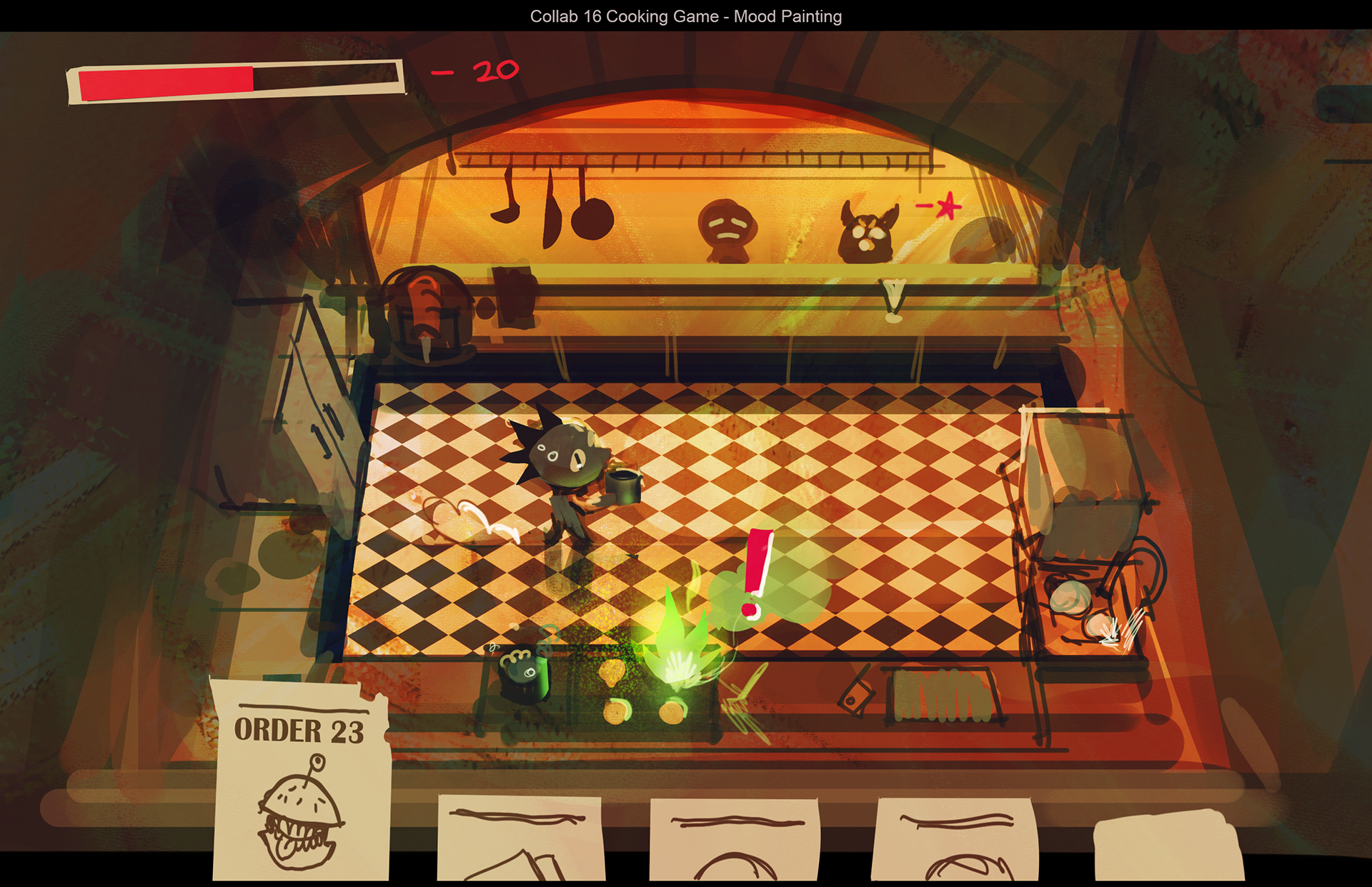 Created some mood paintings for pre-production of Deadplate, wanted to create a chaotic or frantic looking setting for designers to get an idea of where to go.
